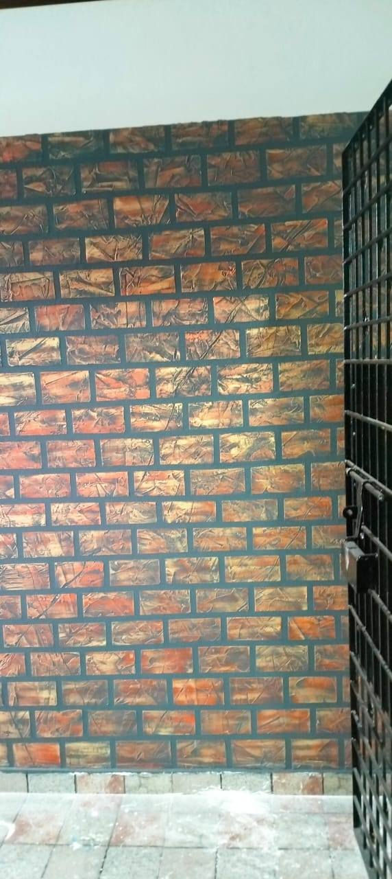 A diverse collection of images showcasing different types of wall designs, including textured wall with mounted flat-screen TV, brick-patterned wall with black metal gate, and colorful circles on textured wall with electrical outlet.